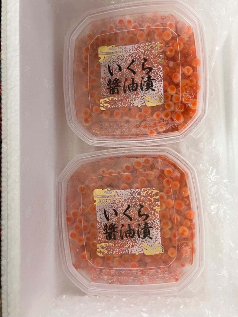 冷凍で届き、ホタテはバター焼きに、いくらはいくら丼でいただきました。