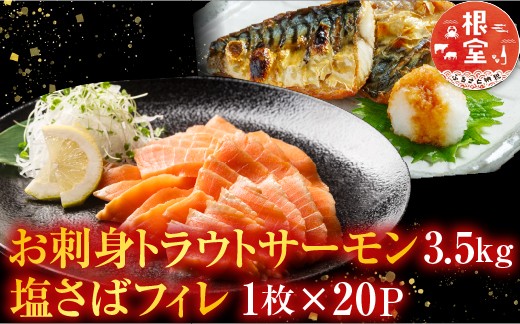 D-09020 お刺身トラウトサーモン3.5kg、塩さばフィレ1枚×20P