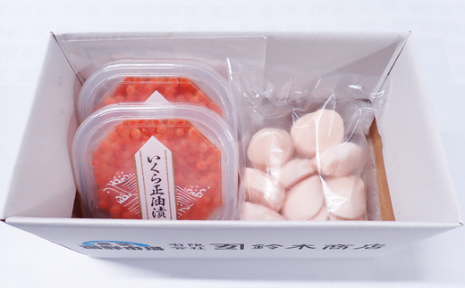 B-14039 いくら醤油漬け(鮭卵)70g×6P、刺身用ほたて200g
