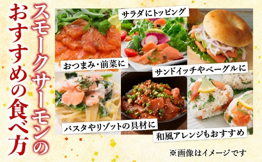 刺身用サーモンを燻製調味液に漬け込み一晩乾燥させました。小分けカットして真空包装しております。