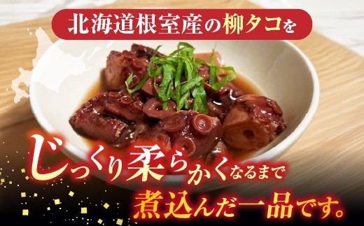 北海道根室産の柳タコをじっくり柔らかくなるまで煮込んだ一品です。解凍後は、そのままお召し上がりいただけます。