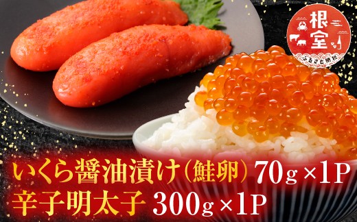 G-28063 根室海鮮市場<直送>いくら醤油漬け(鮭卵)70g×1P、辛子明太子300g×1P