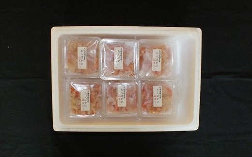 北海道根室市で獲れるたらばがにを使用。新鮮なまま塩ゆでし、食べやすいむき身に加工しました。