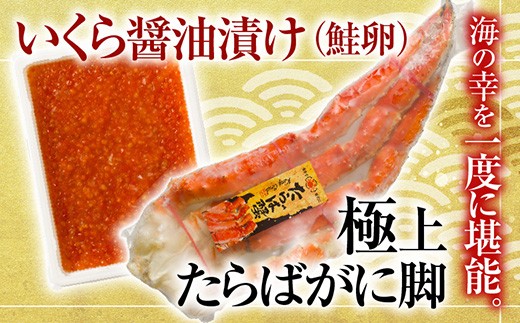 たらばがに脚約1.8kg~2.0kg×1肩といくら醤油漬け200g×2Pをセットでお届けします。