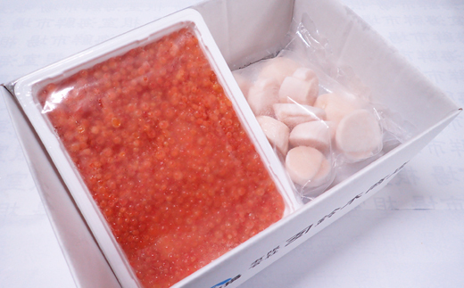 A-28261 根室海鮮市場<直送>刺身用ほたて貝柱200g、いくら醤油漬け(鮭卵)200g