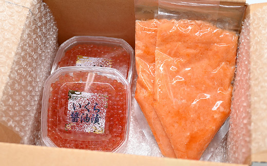 A-81025 いくら醤油漬け・生食可アトランティックサーモン中落ちセット