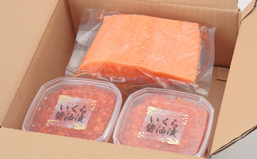 A-81024 いくら醤油漬け80g×2P・生食可アトランティックサーモン300g前後セット