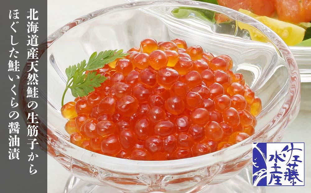 北海道産天然鮭の生筋子からほぐしたいくらを使用し、特製醤油タレに漬け込みました。