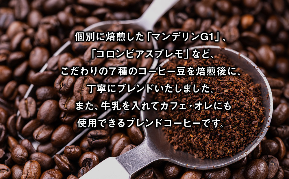 こだわりの7種のコーヒー豆を焙煎後に、丁寧にブレンドいたしました。