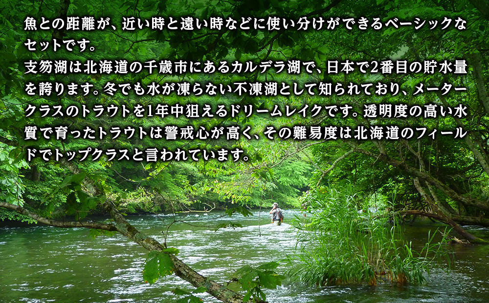 支笏湖は北海道の千歳市にあるカルデラ湖で、日本で2番目の貯水量を誇ります。冬でも水が凍らない不凍湖として知られており、メータークラスのトラウトを1年中狙えるドリームレイクです。透明度の高い水質で育ったトラウトは警戒心が高く、その難易度は北海道のフィールドでトップクラスと言われています。