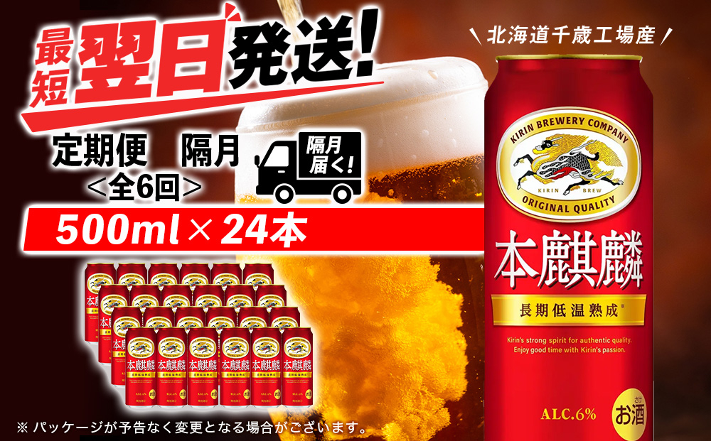 キリン 本麒麟 500ml 24本 が【2ヵ月に1回、全6回】届きます。
