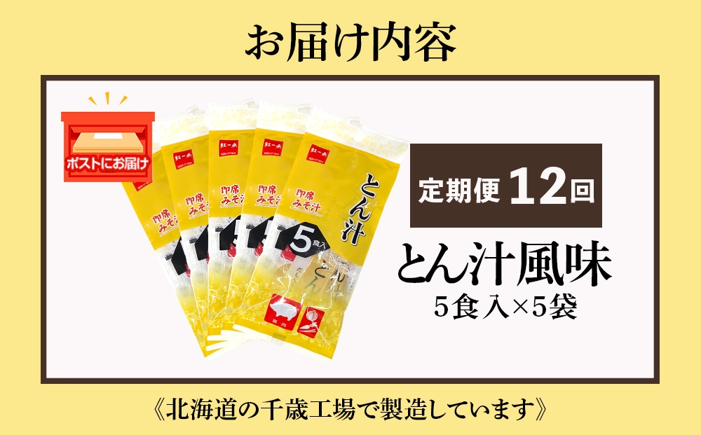 【定期便12ヶ月】 とん汁 インスタント 味噌汁 みそ汁 即席 5食入×5袋 豚汁 【紅一点】《千歳工場製造》