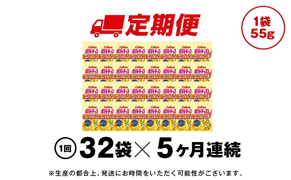 【定期便5カ月】カルビーポテトチップス<コンソメパンチ>16袋入×2箱《千歳工場製造》