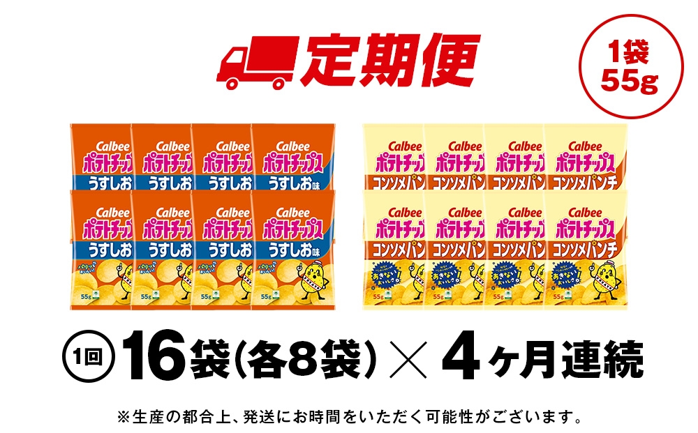 【定期便4カ月】カルビーポテトチップス 2種セット うすしお・コンソメパンチ 各8袋 《千歳工場製造》