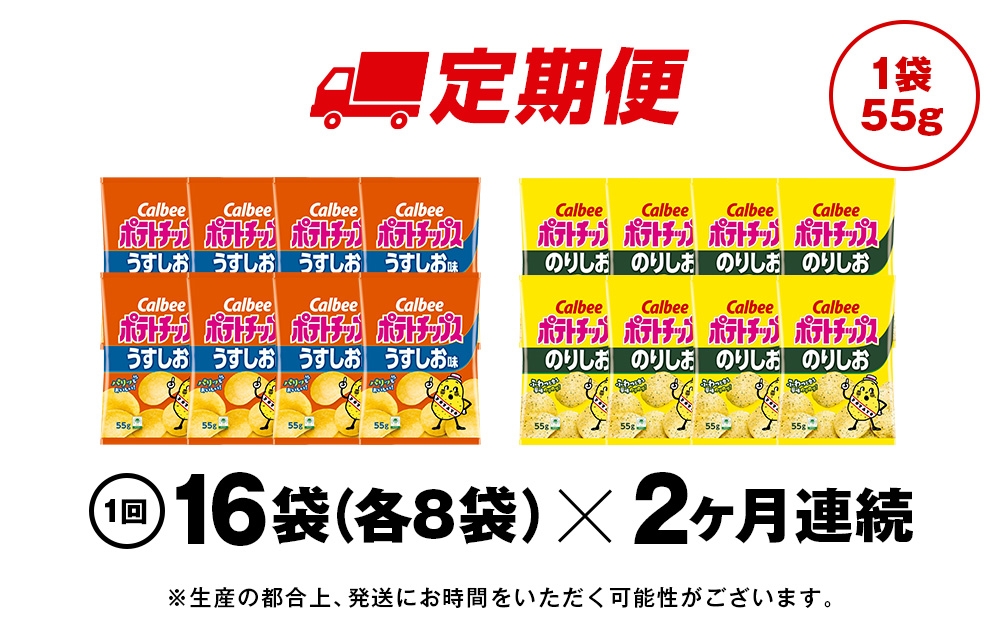 【定期便2カ月】カルビーポテトチップス 2種セット うすしお・のりしお 各8袋 《千歳工場製造》