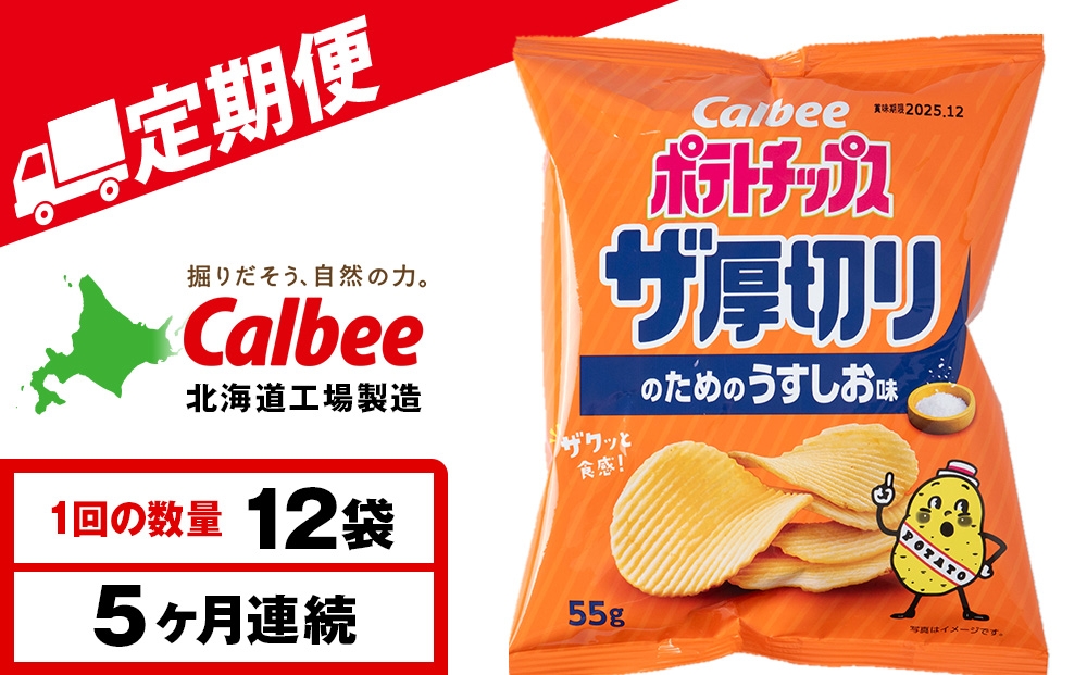 【定期便5カ月】ザ厚切りのための うすしお味 12袋 1箱 カルビー ポテトチップス 《千歳工場製造》