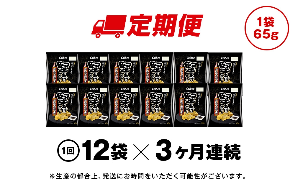 【定期便3カ月】堅あげポテト<ブラックペッパー>12袋入×1箱 カルビー ポテトチップス 《千歳工場製造》