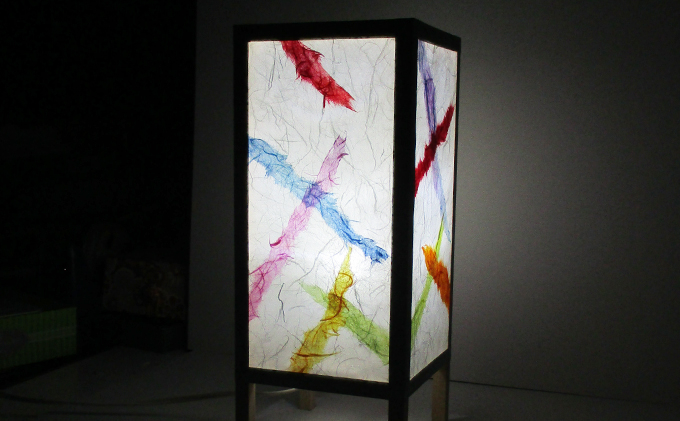 和紙細工工房で一点物制作で手づくりしている和紙行灯です。伝統的和紙が和みや癒しを演出してくれます。