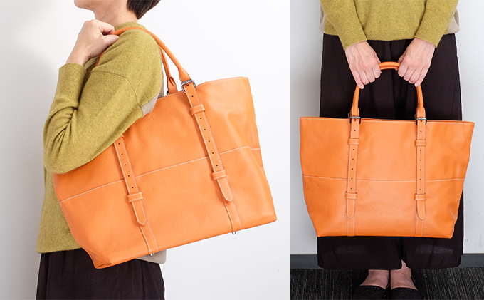 | 容量 | 幅355×高さ320×奥行135mm 重量:約1,400g カラー:オレンジ 素材:表/牛革、裏/牛革・生地 外側/ポケット×1、内側/ファスナーポケット×3、オープンポケット×2、ポケット×3、ペン差し×3 ハンドル高さ調節可(150~340mm) |