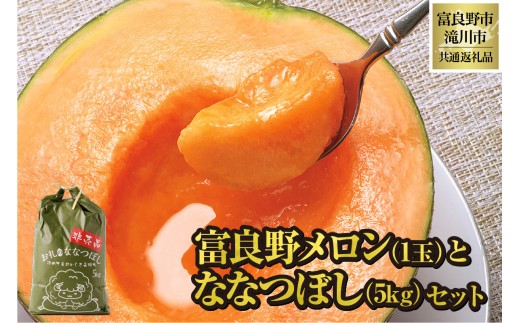 チョイスPayポイントと交換できる品 【2026年出荷受付】共通返礼品 富良野メロン 1玉と ななつぼし 5kg セット(北海道富良野市×滝川市)北海道 果物 くだもの フルーツ メロン 赤肉メロン 赤肉 米 こめ コメ 精米 特A ブランド米 詰合せ 贈答 ギフト 富良野市 滝川市 コラボ