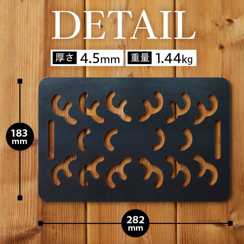 厚さ4.5ミリの黒皮鉄板を使用し、安定した温度と蓄熱効果、熱源を選ばず美味しく焼き上げることが出来ます。