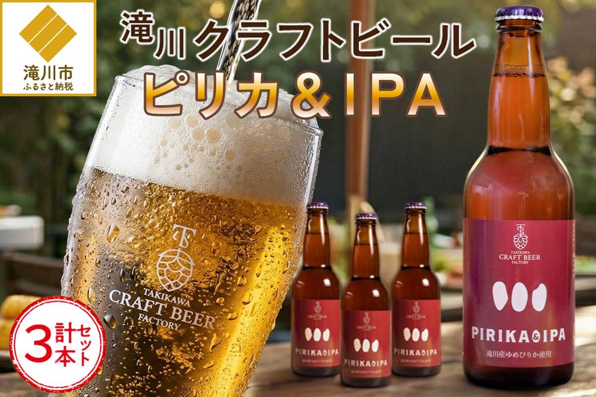 チョイスPayポイントと交換できる品 滝川クラフトビール「PIRIKA&IPA」3本 地ビール 生ビール 非熱処理 ご当地 ゆめぴりか使用 お酒 酒 瓶 エールビール ピリカ IPA 家飲み 晩酌 バーベキュー プレゼント 贈り物 贈答 北海道 滝川市