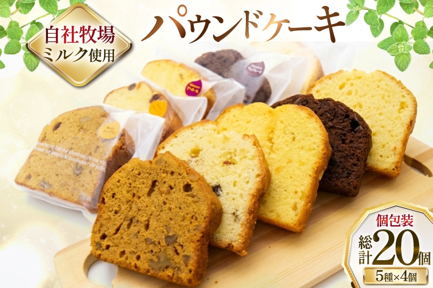 チョイスPayポイントと交換できる品 放牧酪農の恵みたっぷり!素材の良さを引き出した極上パウンド20個 パウンドケーキ 20個 セット 個包装 5種 各4個 [岩瀬牧場 北海道 砂川市 12260959] 常温 お菓子 お取り寄せ 洋菓子 スイーツ 詰め合わせ 箱あり ケーキ