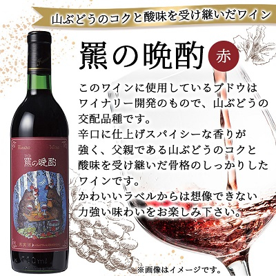 辛口に仕上げスパイシーな香りが強く、父親である山ぶどうのコクと酸味を受け継いだ骨格のしっかりしたワインです。
