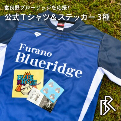 富良野ブルーリッジの公式練習用Tシャツとオリジナルステッカー3種のセットです。