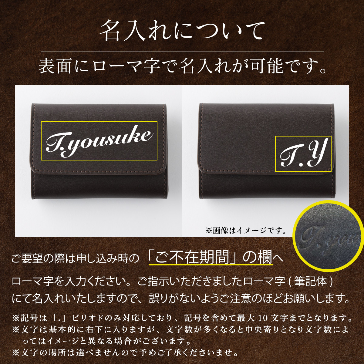 ※表面にローマ字で名入れが可能です。ご要望の際は申し込み時の「ご不在期間」の欄へローマ字を入力ください。入力位置を誤られた場合の補償はいたしかねます。