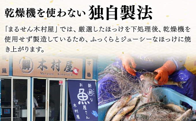 真ホッケの下処理後、当社独自の製法にて乾燥機を使用せず製造しておりますので、焼き上がったときにふっくらとした食感と、ジューシーな味わいをお楽しみいただけます。