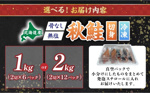 チョイスPayポイントと交換できる品 北海道産の秋鮭を使いやすい切り身にして、骨取までしています! 【量が選べる!】北海道産秋鮭切り身(骨取り)約1kg〜2kg 鮭 サケ シャケ 魚貝類 天然 秋鮭 生鮭 切り身 骨なし 大容量 小分け 北海道産 海の幸 ふるさと納税 北海道 登別市