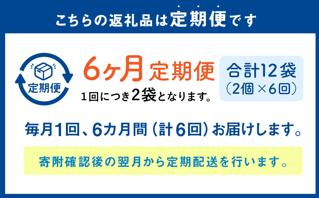 | 発送期日 | 寄附確認後の翌月より毎月(計6回)お届けいたします。 |