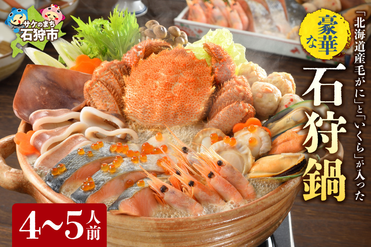 石狩産(もしくは北海道産)の秋鮭をメインにたっぷり海鮮素材入り! 「北海道産毛がに」と「いくら」が入った豪華な石狩鍋【4~5人前】|ふるさと納税 石狩市 いしかり鍋 鮭鍋 しゃけ サケ 鮭 味噌味 鍋セット 魚介鍋 海鮮鍋 北海道