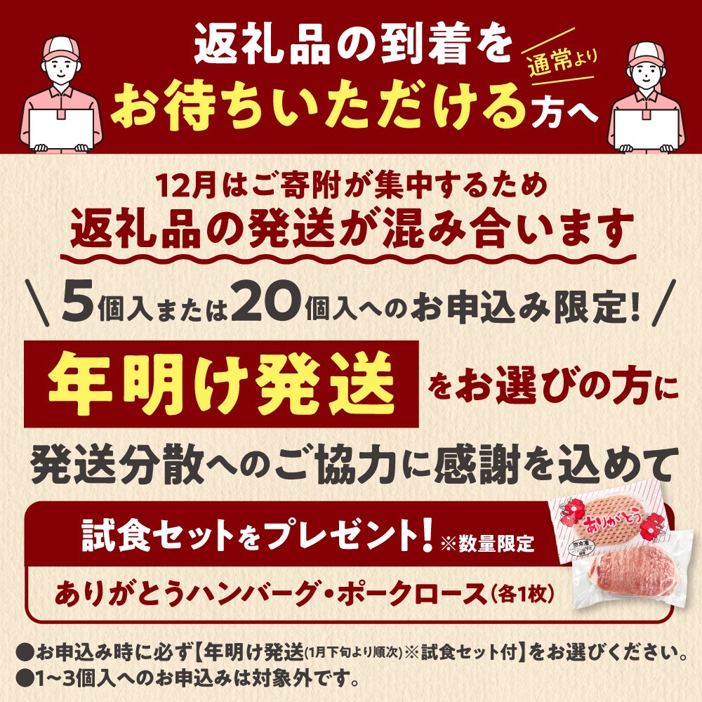| 申込期日 | 通年 【順次発送】ご入金確認後、最短4~7営業日以内に発送 【年明け発送】ご入金確認後、2026年1月20日以降順次発送予定。 ※GW・お盆期間・年末年始を除きます。 ※お申込み後のキャンセル・配送先情報の変更・配送時期の指定は対応いたしかねます。 ※お申込みが集中した場合、表記の納期よりお届けまでお時間をいただくことがございます。予めご了承ください。 |