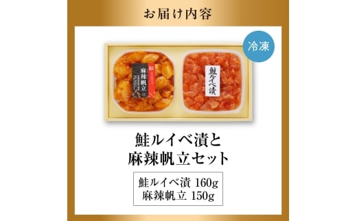 ~北海道産の鮭と北海道産の帆立の旨味を引き出した、珍味の食べ比べセット~ 佐藤水産 鮭ルイベ漬と麻辣帆立セット(鮭ルイベ漬160g・麻辣帆立150g)