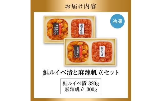 ~北海道産の鮭と北海道産の帆立の旨味を引き出した、珍味の食べ比べセット~ 佐藤水産 鮭ルイベ漬と麻辣帆立セット(鮭ルイベ漬320g・麻辣帆立300g)