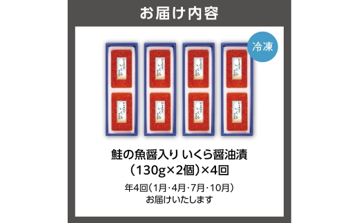 佐藤水産鮭の『魚醤入りいくら醬油漬(260g)』を年4回(1月・4月・7月・10月)お届けする定期便です。