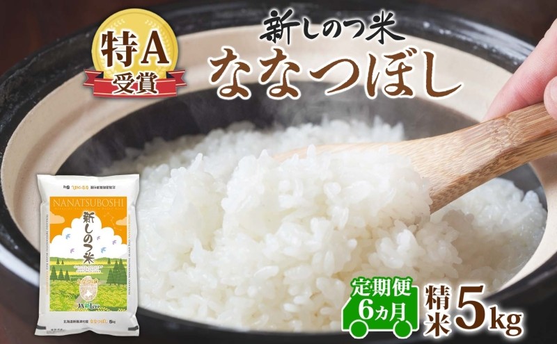 【ふるさと納税】北海道 定期便 6ヵ月連続 全6回 R7年産 北海道産 ななつぼし5kg 精米 米 白米 ごはん お米 新米 特A 獲得 北海道米 ブランド米 道産 ご飯 お取り寄せ 半年 食味ランキング あっさり ふっくら まとめ買い 新しのつ米 令和7年産 常温 送料無料