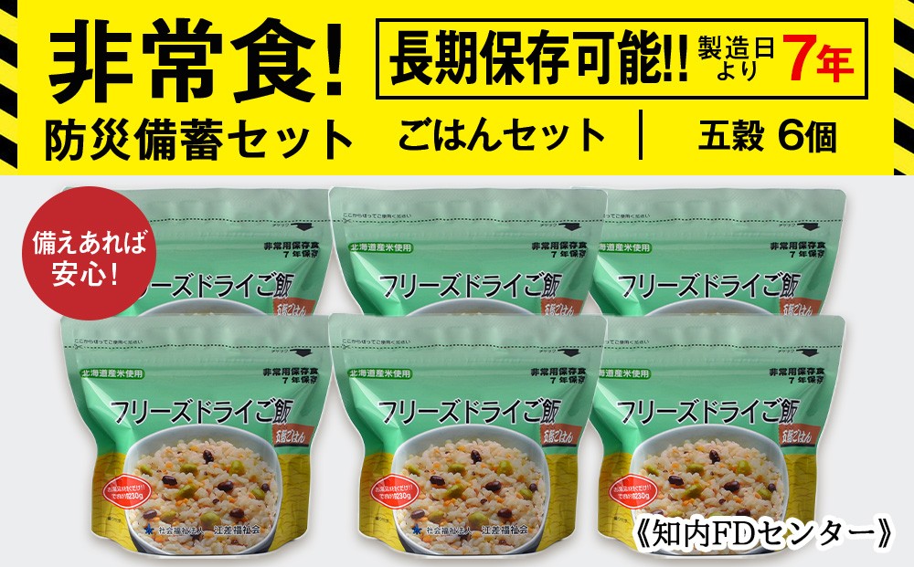備えあれば安心!非常食!防災備蓄ごはんセット~五穀6個セット~《知内FDセンター》備蓄 災害 非常食セット 非常食 防災グッズ 防災 防災セット
