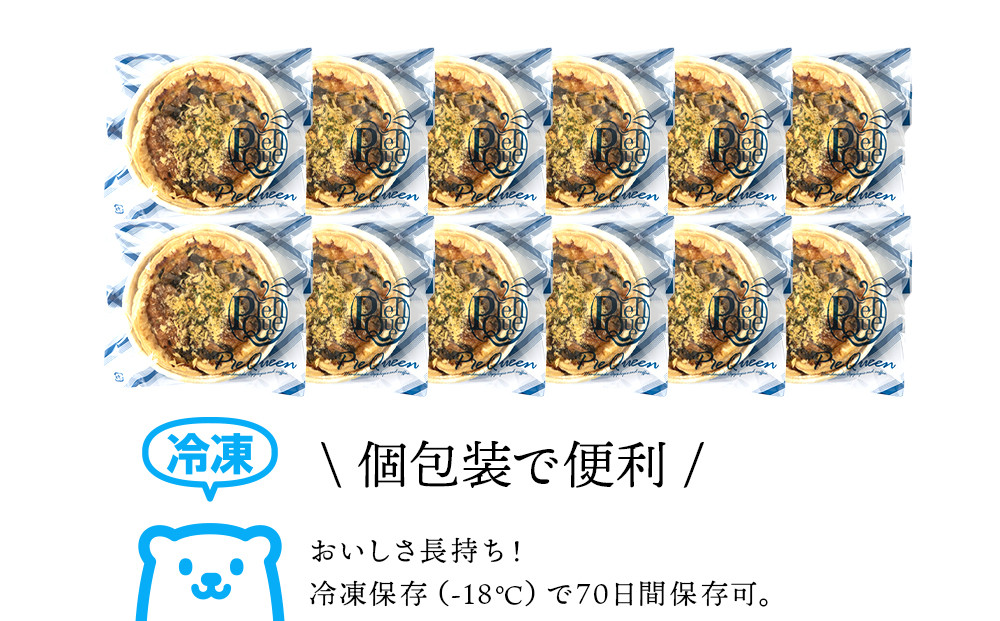 | 容量 | ニラとチーズのキッシュパイ 12個入り(1個 約75g) 【原材料】北海道知内町 【加工地】北海道札幌市 |