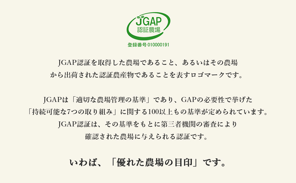 帰山農園は、第三者機関が認めるJGAP認証農場です。
