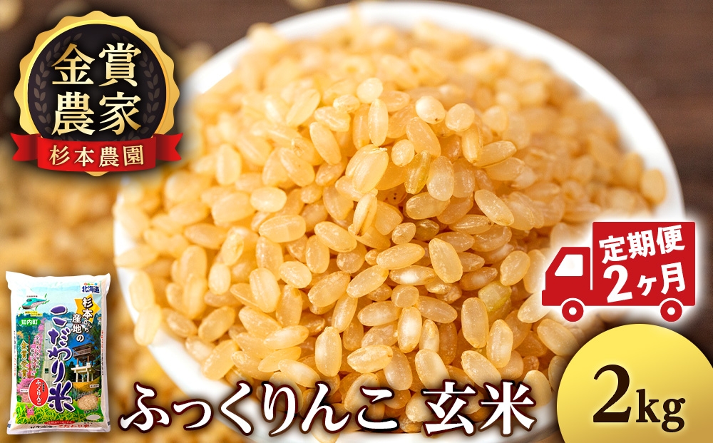 【定期便2回】ふっくりんこ玄米2kg≪杉本農園≫