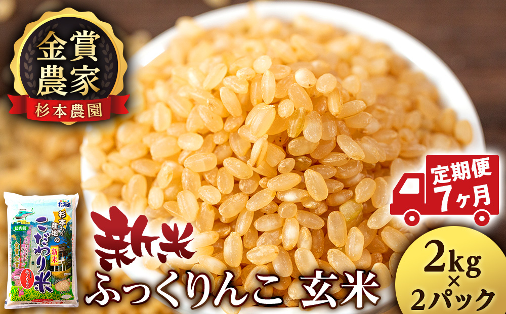 【新米予約】【定期便7回】ふっくりんこ玄米4kg(2kg x 2)≪杉本農園≫