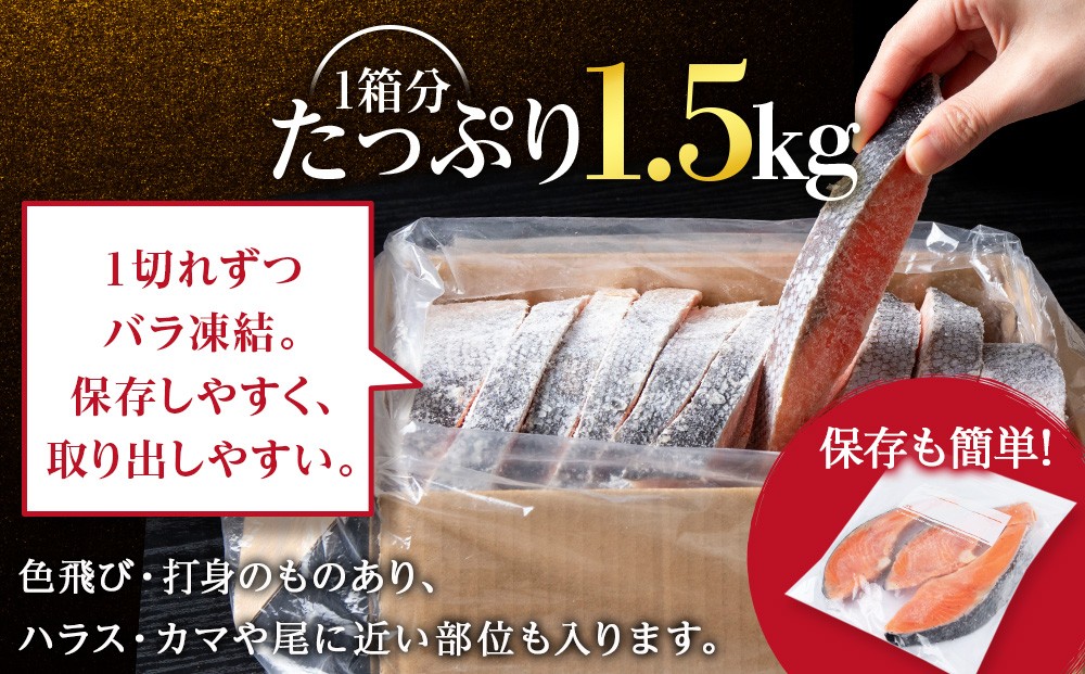 塩銀鮭 切り身 1.5kg <三洋食品> 切身 銀鮭 塩鮭 北海道 訳あり 知内町 魚介類 しゃけ シャケ 鮭 さけ サケ 便利 食品 味付 海鮮 使い勝手抜群 カット済み ギンサケサーモン サーモン お弁当 おかず 家庭用