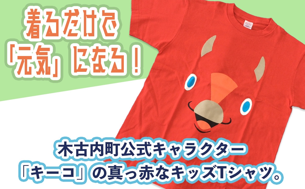 ◆〈着るだけで「元気」になる!〉木古内町公式キャラクター「キーコ」の真っ赤なキッズTシャツ。