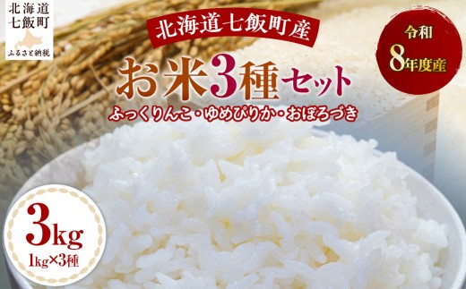 NEW 【先行予約】令和8年産お米3種セット1kg×3(ふっくりんこ、ゆめ…