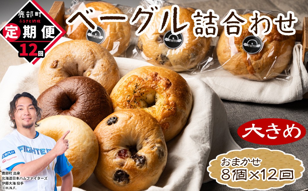 ふっくらもちもちの大きめベーグル 【定期便】全12回 毎月お届け 北海道産 ベーグル 8個 詰め合わせ おまかせ セット 個包装 小分け パン