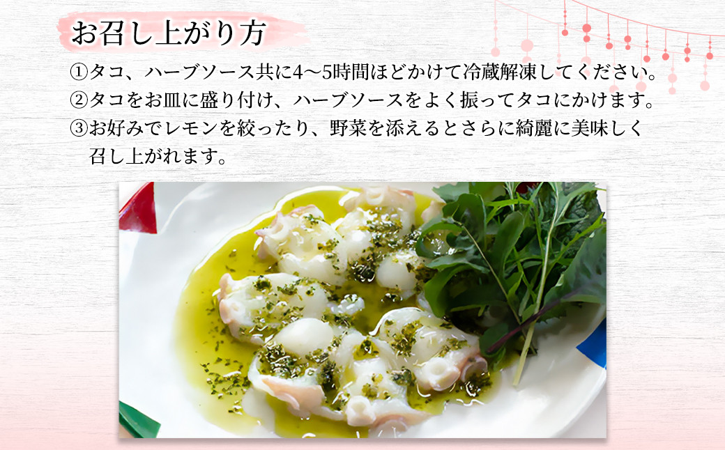 北海道のタコと自家製ハーブソースのカルパッチョセット! 北海タコのハーブカルパッチョ(タコ100g+ハーブソースセット)×3