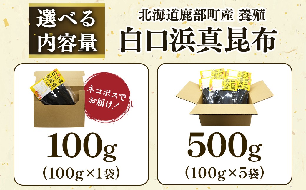漁師が手間暇をかけて育てた「白口浜真昆布」です! 【選べる内容量】北海道鹿部町産 養殖 白口浜真昆布 100g~500g 真昆布 だし